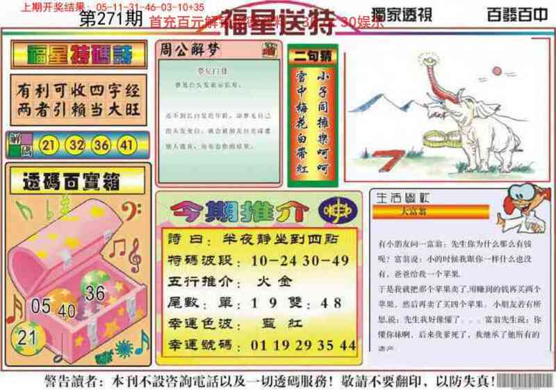 272期九肖 [兔鸡龙羊虎牛鼠猴] 开:马36